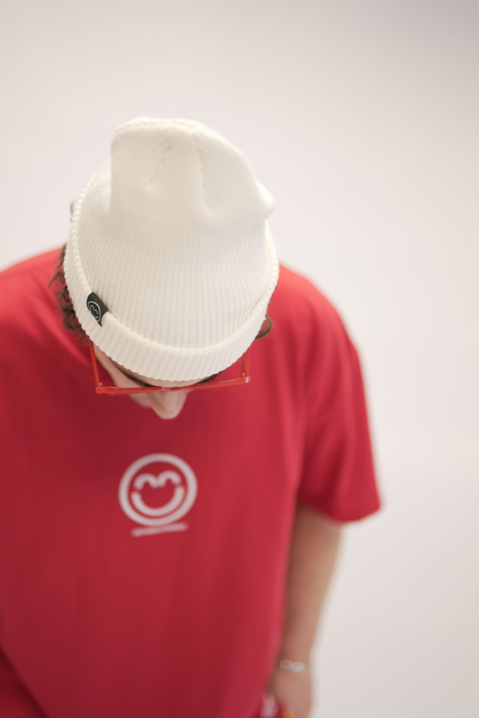 Beige Smile Beanie with Black Tag